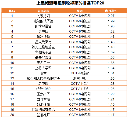 ◆ 精品荟萃大剧连台,上星电视剧收视率前20名总台占19席